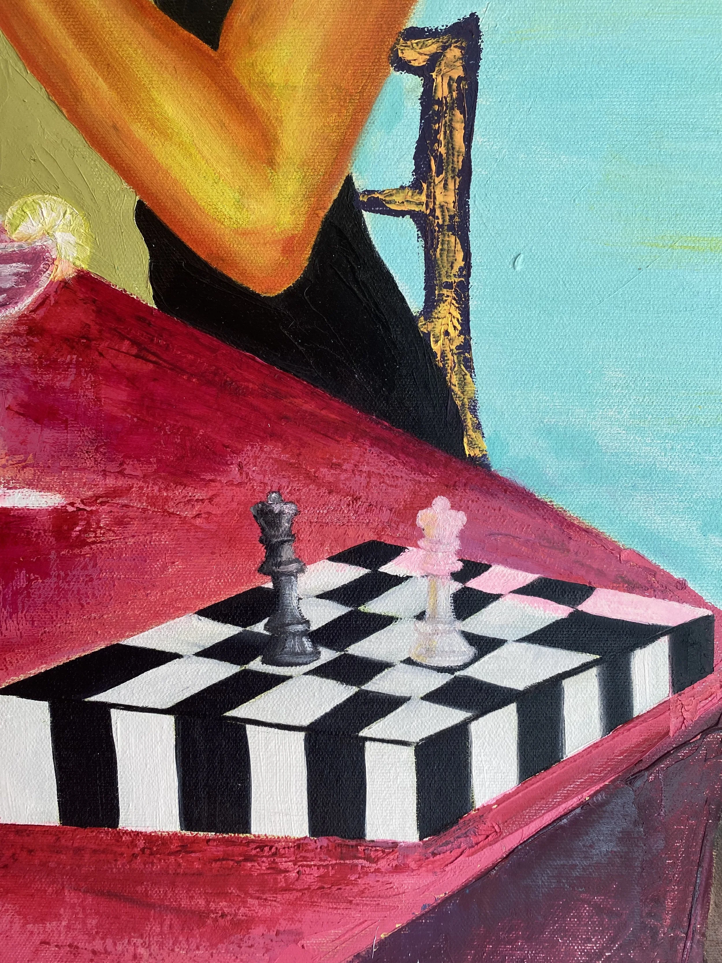 I painted in some elements from my grandparents house, and colors that remind me of my grandmas fierce energy.