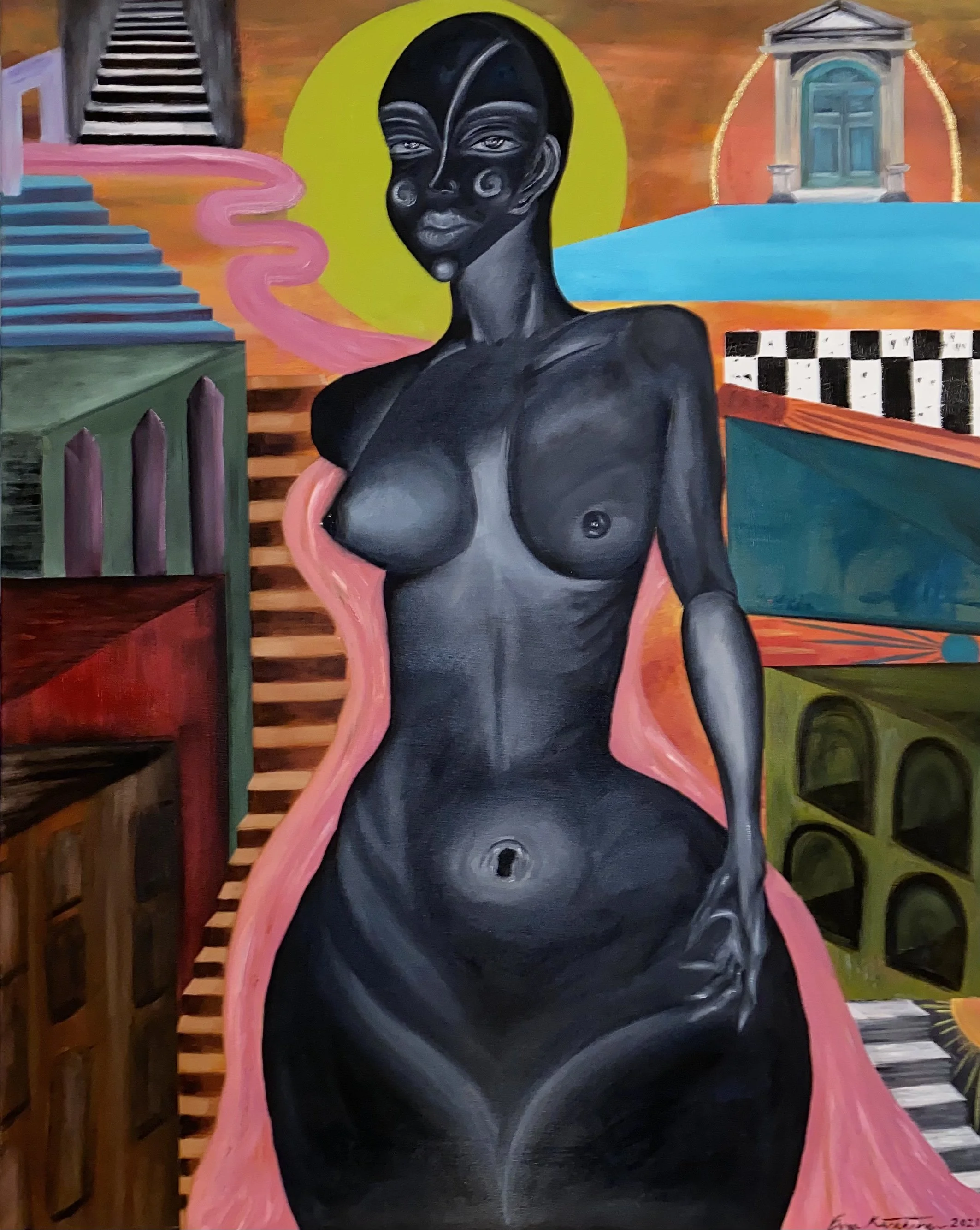 Story of: calm before the storm- 2019-2021. Oil and metal leaf on canvas