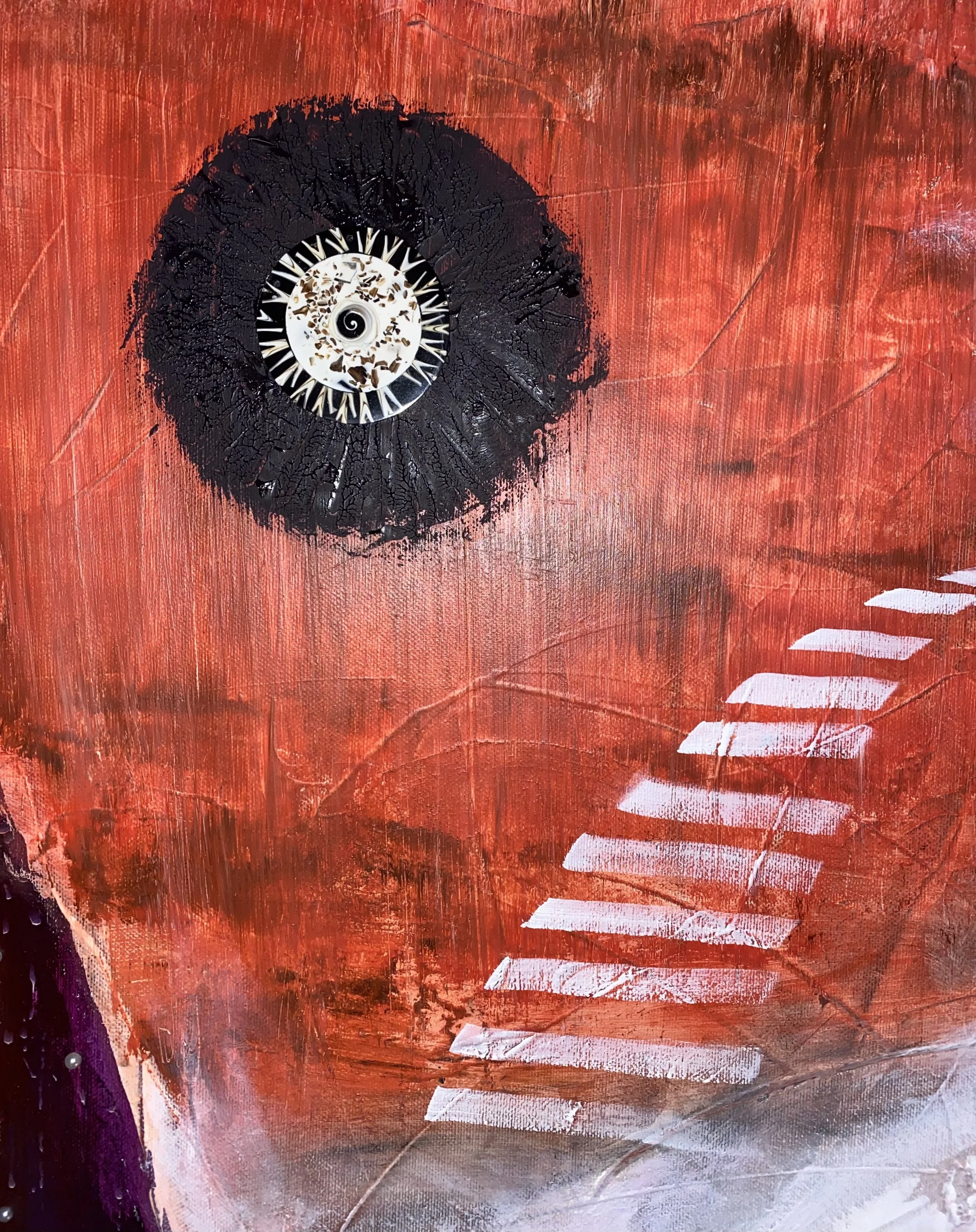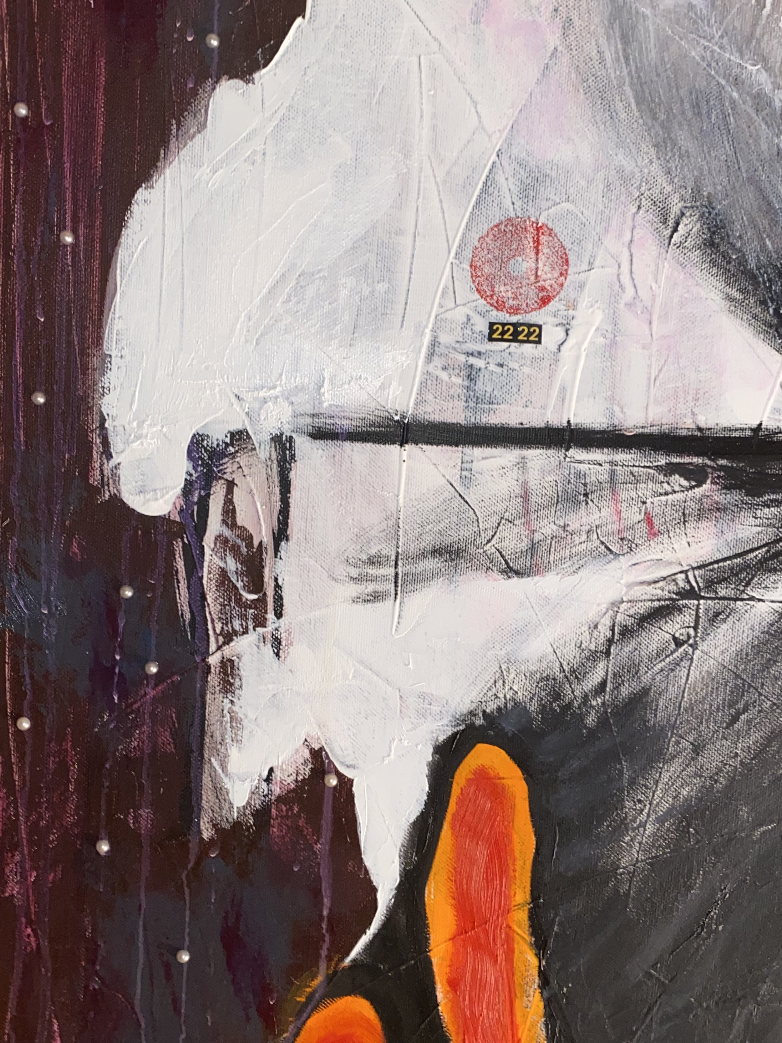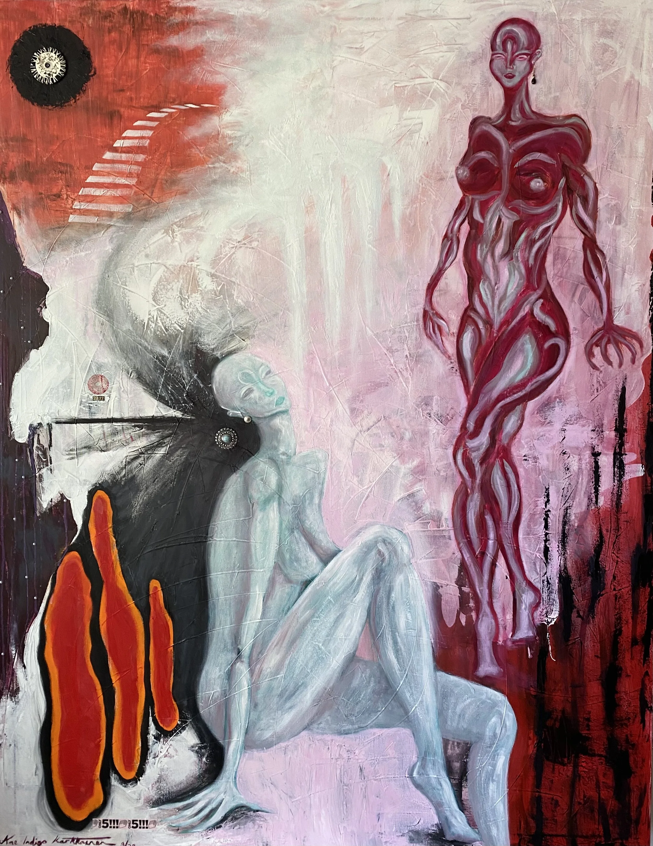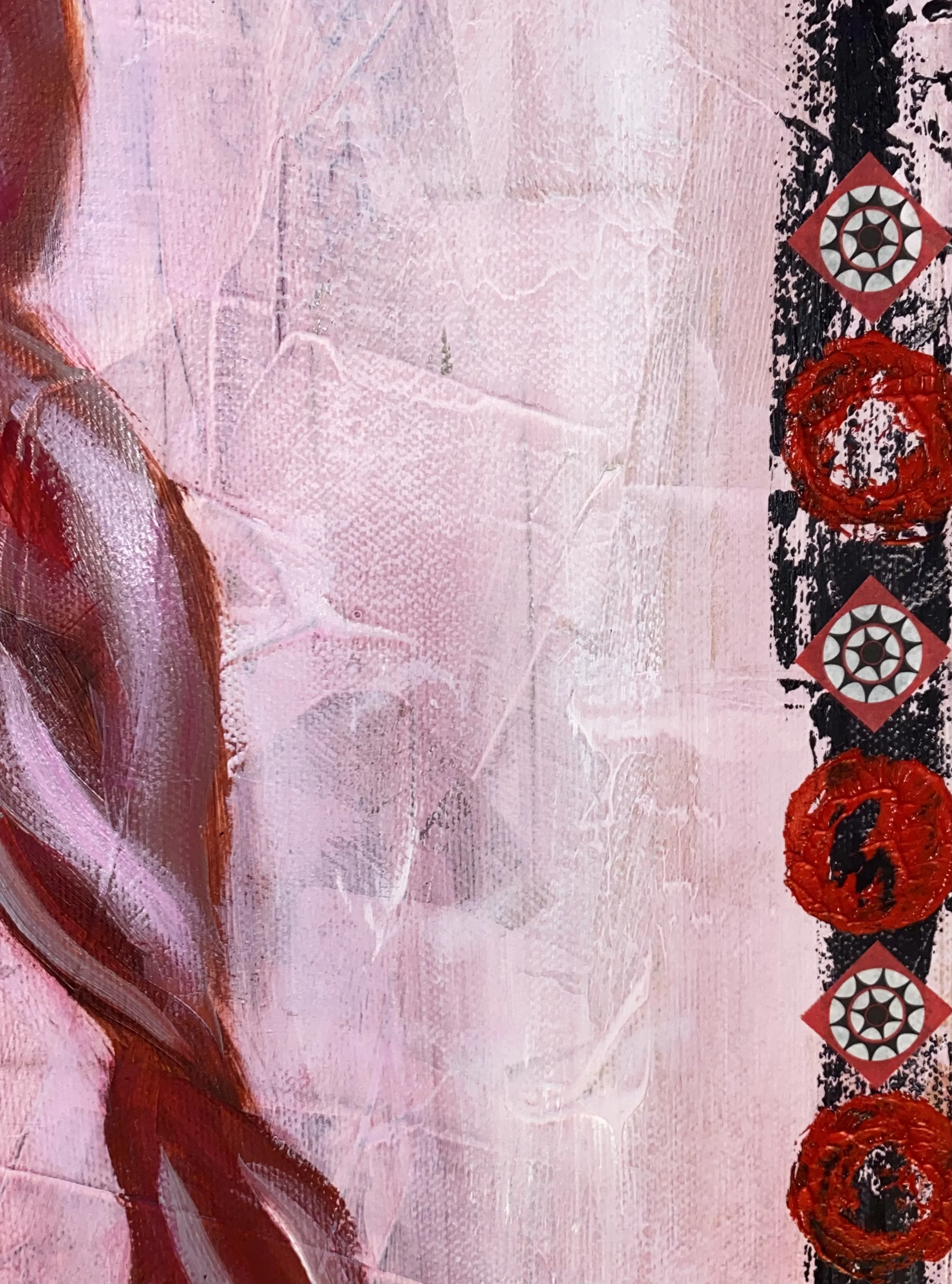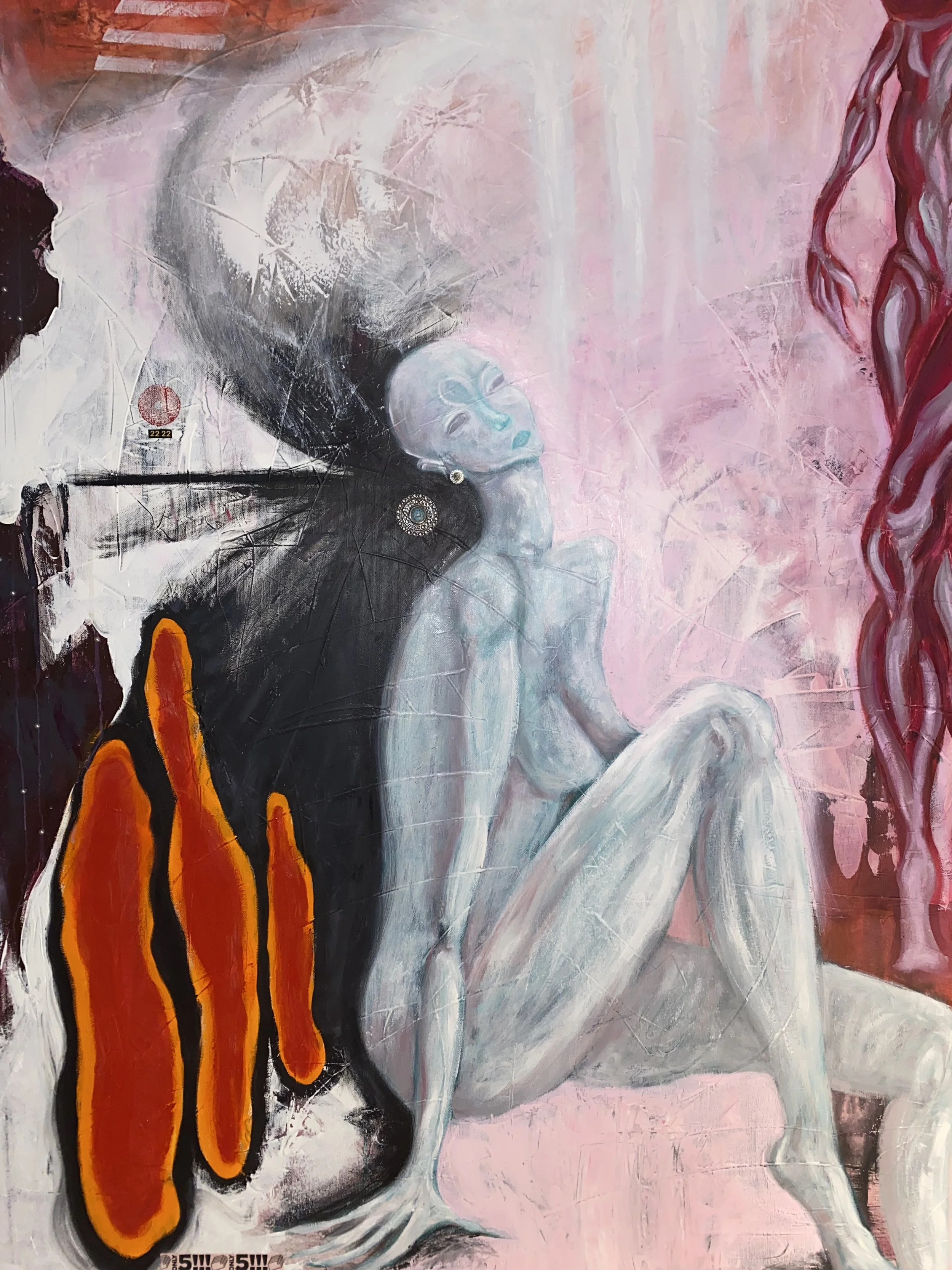 Oil, ink, acrylic & upcycled mixed media on canvas